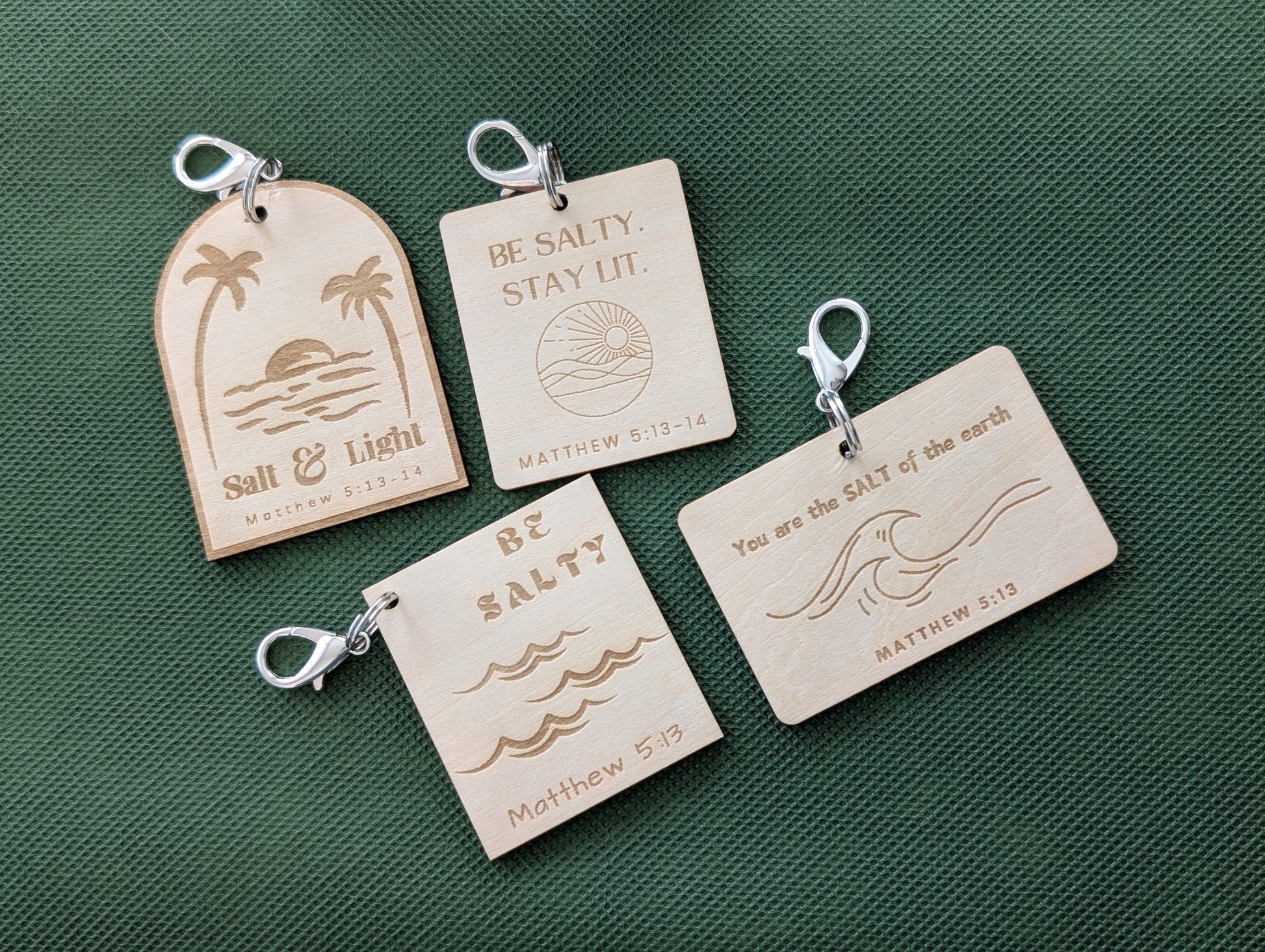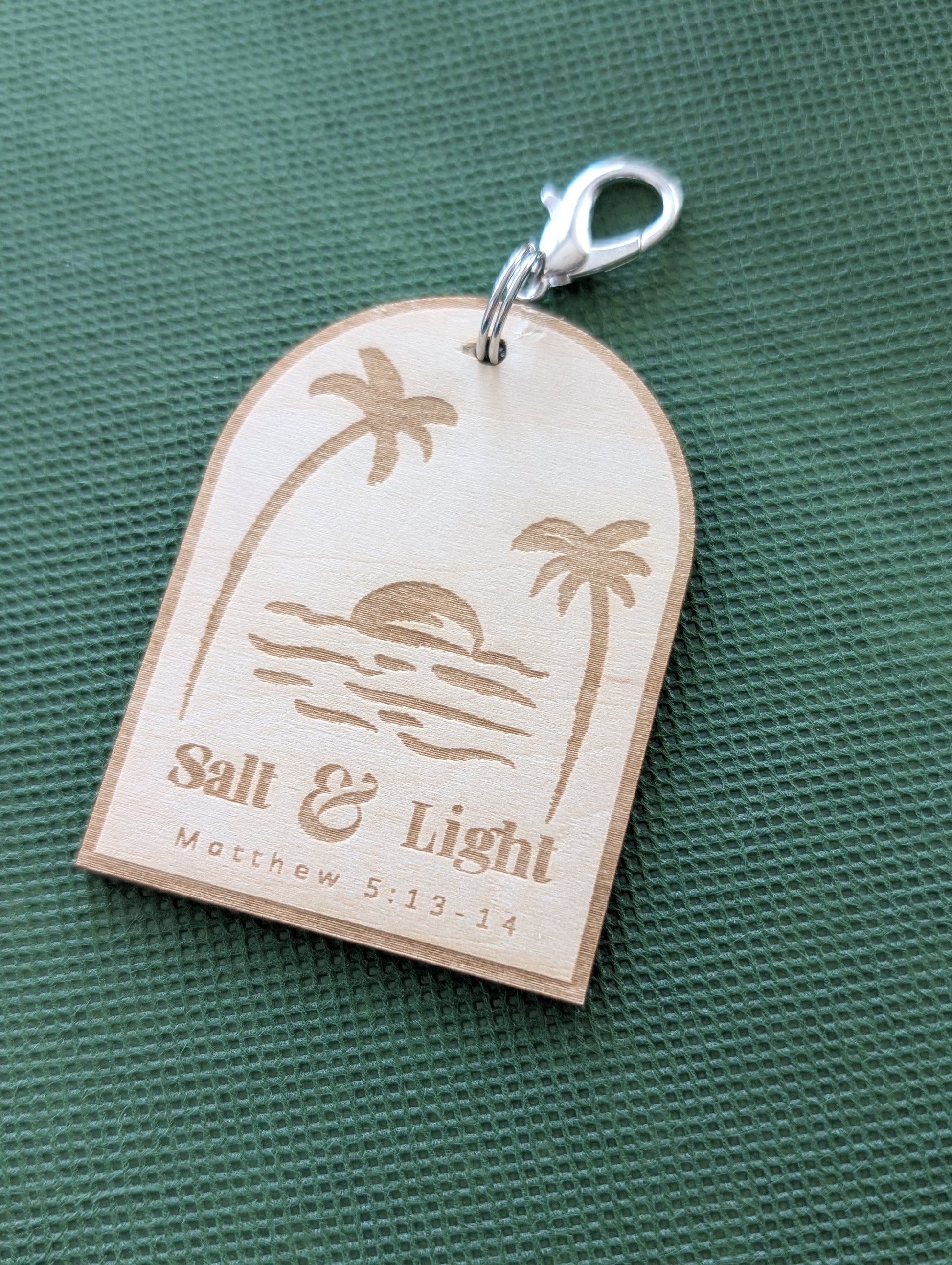 Beautiful wooden charm keychain with quote/verse etching and metal clip